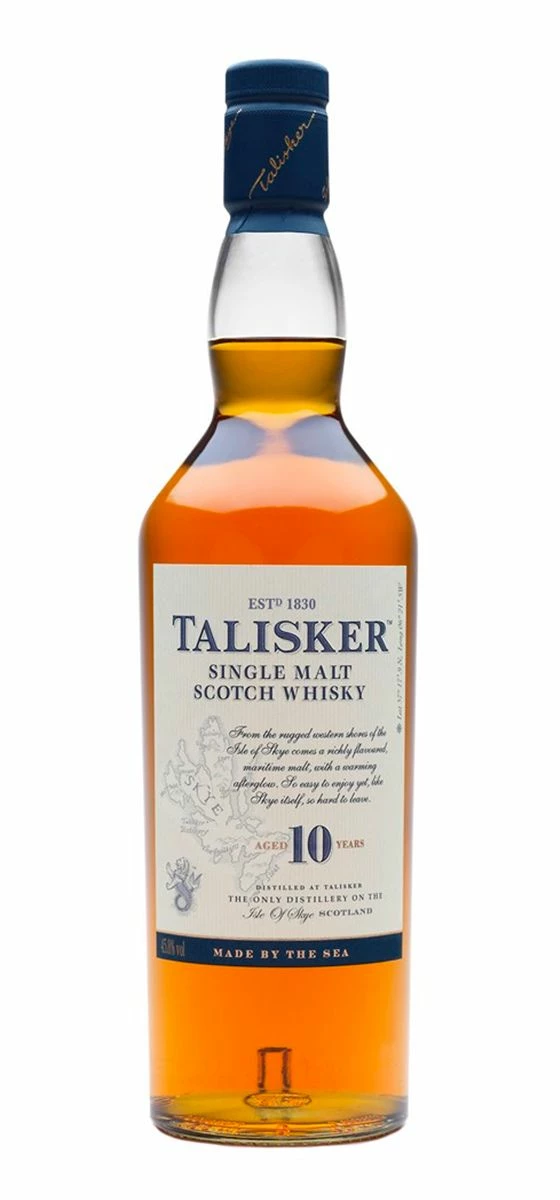 Talisker 10 ans est un Single Malt de l’île de Skye marqué par l’iode et les épices. On peut sans aucune difficulté affirmer que ce whisky est doté d’un style et d’un caractère bien marqués doublés d’une puissance maîtrisée grâce à l’influence marine.Son nez est tourbé, sa bouche épicée et fumée avec une grande onctuosité et du peps en finale.